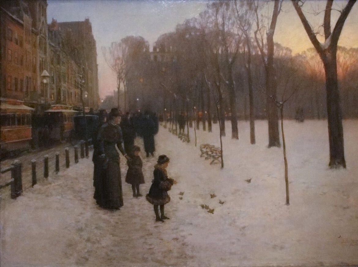 Images: The featured image, At Dusk (Boston Common at Twilight), is by Childe Hassam and can be seen at the Museum of Fine Arts, Boston. First gas lamp in Baltimore By LarryGrim – Own work, CC BY-SA 4.0, https://commons.wikimedia.org/w/index.php?curid=49579890. South Boston gas light by City of Boston Archives via Flickr, CC by 2.0. Gas lantern on brick building, City of Boston Archives via Flickr, CC by 2.0. Electric street light on gas lamp post, City of Boston Archives via Flickr, C by 2.0.,