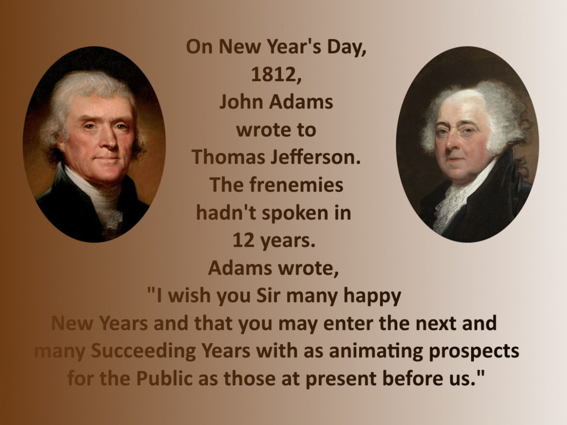 On New Year’s Day 1812, former president John Adams picked up his quill pen at his home in Quincy, Mass., and wrote for the first time in years to former president Thomas Jefferson. In the missive, John Adams wishes his old friend Thomas Jefferson many happy new years.