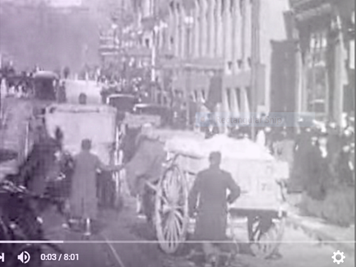 Seeing Boston By Streetcar stands as one of the first films of the city ever made. It offers today’s viewer a fascinating glimpse of the city’s smoky, busy streets. The streetcar takes the viewer past Jordan Marsh and along Boylston Street to Copley Square and the Boston Public Library. Pedestrians, horses, carriages and carts vie for space in a free-for-all with no traffic lights, no crosswalks and no stop signs.