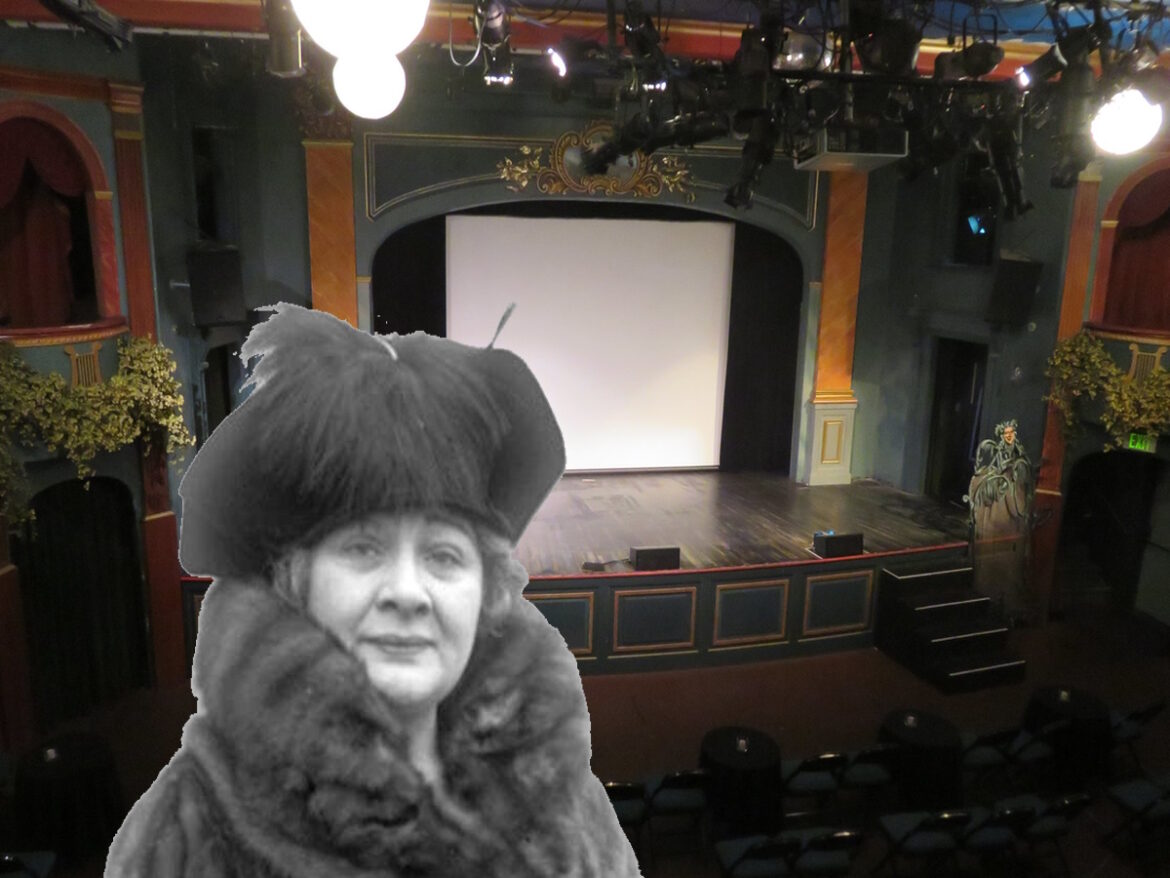 Images: Publicity photo of Sophie Tucker by By unknown – ebay, PD-US, https://en.wikipedia.org/w/index.php?curid=43063093. Theater background in featured image is Throckmorton Theatre by Fabrice Florin via Flickr, CC By-SA 2.0.