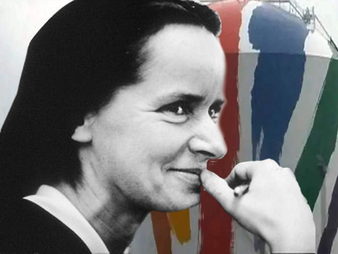 A controversy then erupted over the blue swash, said to contain the profile of Ho Chi Minh. Though Kent worked for peace, she denied painting the Vietnamese leader. In 1992 the Rainbow Swash tank was torn down and the Swash was reproduced on the adjacent tank – over the objections of veterans’ groups.