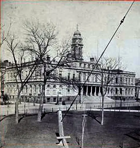 If “the boys” thought they were playing soldier, and were off for a prolonged picnic, they were disabused of that idea when they reached New York. The rain fell in torrents: no provision had been made for their coming. They marched, dirty and hungry, through the muddy streets to the Park, and toward morning are let into the City Hall to get what rest they can on the stone floor, at least they are out of the rain and the mud…